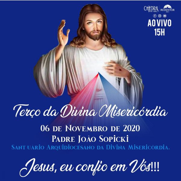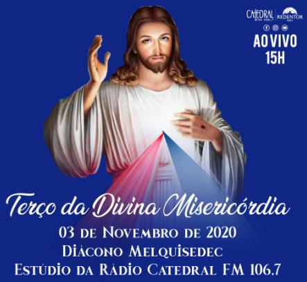 Acompanhe o Terço da Misericórdia hoje, às 15h. Ele será rezado pelo diácono Melquisedec, dos estúdios da Rádio Catedral. Você pode acompanhar pela nossa rádio, Catedral FM, 106,7, ou nas nossas mídias sociais, instagram, facebook ou youtube. Para fazer o seu pedido ou oferecimento é só ligar para a nossa central de relacionamento, 3231-3560.