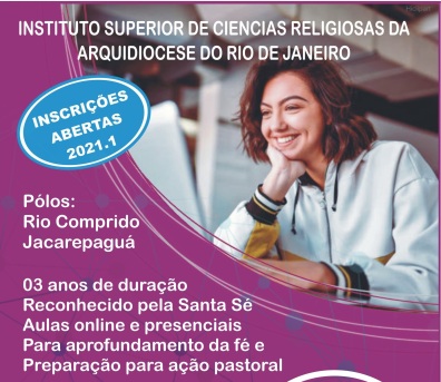 O Instituto Superior de Ciências Religiosas da Arquidiocese do Rio de Janeiro vai abrir as inscrições para o primeiro semestre de 2021. As aulas serão nos pólos Jacarepaguá e Rio Comprido, com início no dia 1º de março. As inscrições poderão ser feitas de 7 a 23 de dezembro, e de 25 de janeiro a…