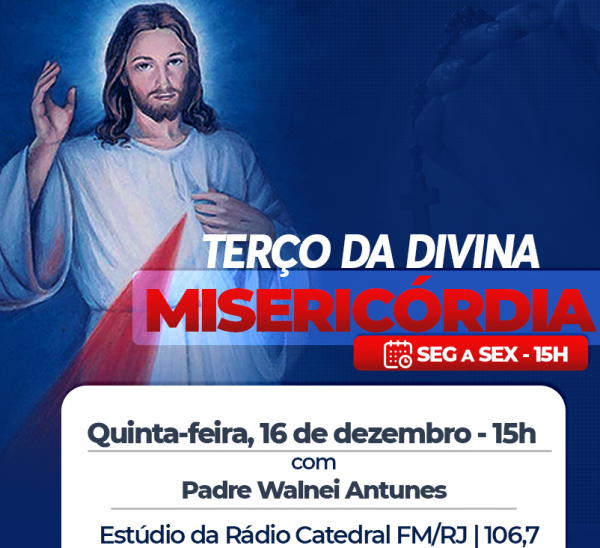 Como ocorre todas as sextas-feiras, hoje, às 15h, o Terço da Misericórdia é rezado no Santuário da Divina Misericórdia, no bairro de Vila Valqueire, conduzido pelo pároco, padre João Sopicki. E amanhã, a Rádio Catedral fica em sintonia com a Rádio Anunciadora, em Niterói para a oração do terço. No sábado, ele será conduzido pelo…