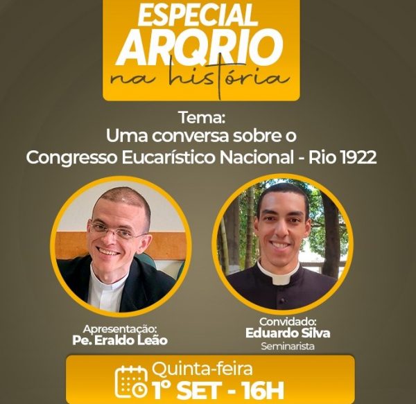 A Rádio Catedral apresenta hoje mais um programa “Especial Arqrio na história”. Hoje, o programa vai destacar o primeiro Congresso Eucarístico Nacional, que foi realizado no Rio de Janeiro em 1922, portanto está completando 100 anos. O padre Eraldo Leão vai receber o seminarista Eduardo Silva para contar a história deste grande evento realizado no…