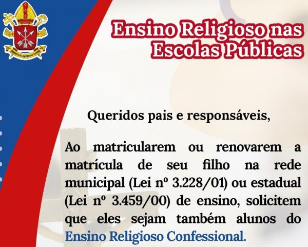As escolas estaduais e municipais já estão fazendo as matrículas para o ano letivo de 2023. O Vicariato Episcopal para a Educação lembra aos pais e responsáveis que ao matricularem ou renovarem as matrículas de seus filhos nas redes estadual e municipal que solicitem que eles sejam matriculados também na matéria de Ensino Religioso Confessional.…