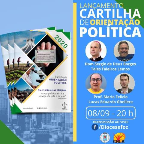 Um encontro virtual amanhã, dia 8, vai lançar a cartilha de orientação política da CNBB. O encontro vai reunir o Bispo Auxiliar de São Paulo, Dom Sergio de Deus Borges, Tales Faleiros Lemos, o professor Mario Felício e Lucas Eduardo Ghellere, às 20h. Ela será transmitida pelo Facebook @diocesefoz. Eles vão refletir sobre “Os cristãos…