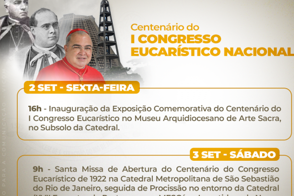 Dentro das comemorações dos 100 anos do I Congresso Eucarístico Nacional, realizado no Rio de Janeiro em 1922, será inaugurada nesta sexta-feira a exposição comemorativa do centenário. A inauguração será às 16h, e a exposição ficará no Museu Arquidiocesano de Arte Sacra, no subsolo da Catedral de São Sebastião. O museu fica aberto de terça…