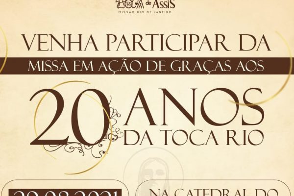 Com missa celebrada no domingo, dia 29, na Catedral de São Sebastião, presidida pelo Cardeal Dom Orani Tempesta, a Toca de Assis comemorou 20 anos de atividades no Rio de Janeiro. Além da casa central, no bairro de Cosme Velho, a Toca de Assis também está instalada em Benfica, onde são realizados trabalhos semanais com…