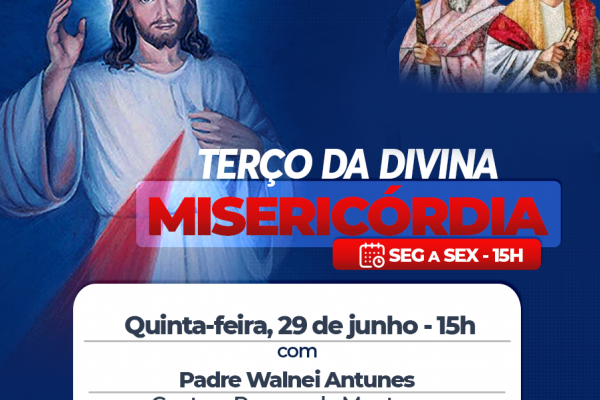 A igreja comemora hoje a festa dos apóstolos Pedro e Paulo, e por isso o Terço da Misericórdia nesta quinta-feira será rezado na Paróquia São Paulo Missionário, na Rua Granada, 81, no bairro de Vigário Geral. Você também pode rezar o Terço da Misericórdia acompanhando no nosso aplicativo em seu celular, ou nas plataformas sociais…
