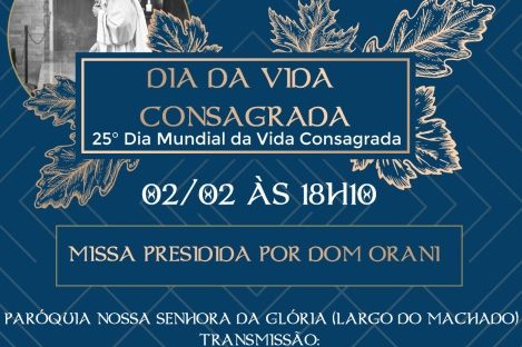 Com o tema “Testemunhas de uma certeza”, e lema “Eu sei em quem acreditei”, no dia 2 de fevereiro a igreja comemora o Dia da Vida Consagrada”. A data será celebrada com uma missa, presidida pela Cardeal Dom Orani Tempesta, às 18h10, na Paróquia Nossa Senhora da Glória, no Largo do Machado. Acompanhe e participe…