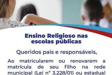 Veja maisQueridos pais e responsáveis. Ao matricularem ou renovarem a matrícula de seu filho nas redes municipal (Lei nº 3.228/01) ou estadual (Lei nº3.459/00) de ensino, solicitem que eles também sejam alunos do ENSINO RELIGIOSO CONFESSIONAL. Para mais informações é só procurar o Vicariato Episcopal para a Educação, Rua Benjamim Constant, 23, 3º andar, Glória, ou…