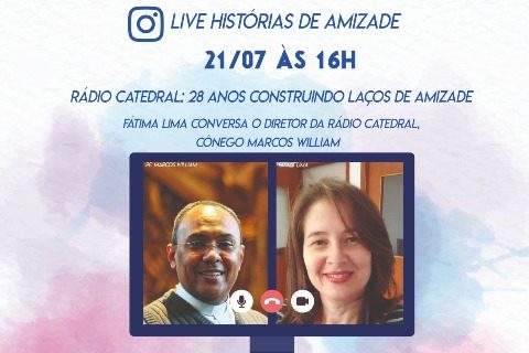 Nesta quarta-feira, dia 22, acontece mais uma Live da Amizade, na Rádio Catedral, pela Semana do Amigo. Às 16h, Fátima Lima vai conversar com Alexandre Costa, do Setor de Relacionamento da Rádio Catedral, sobre “Como trabalhar a perseverança com o ouvinte-amigo da Rácio Catedral?”