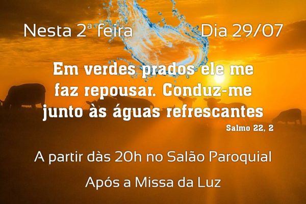 Todo primeiro sábado do mês, a comunidade da Paróquia Nossa Senhora do Divino Amor, que fica na Estrada Coronel Vieira, 812, no Irajá, se reúne para um ato em desagravo do Imaculado Coração de Maria. Portanto, o próximo encontro será neste sábado, 3 de agosto. O desagravo terá inicio às 7h, com a oração do…