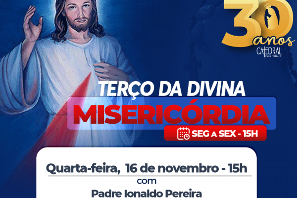 O Terço da Misericórdia desta segunda-feira será transmitido pela Rádio Catedral, FM 106,7, às 15h. A condução estará à cargo do padre Charles Fernando. Você também acompanhar pelo Facebook, Youtubr e Instagram da nossa rádio. Participe e faça o seu oferecimento pela nossa Central de Relacionamento ou no pelo nosso WhastsApp, o número é 3231-3560.