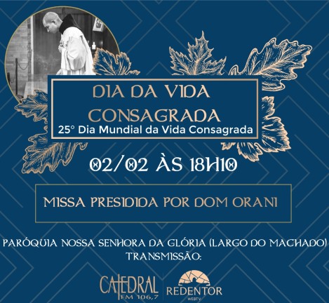 Com o tema “Testemunhas de uma certeza”, e lema “Eu sei em quem acreditei”, no dia 2 de fevereiro a igreja comemora o Dia da Vida Consagrada”. A data será celebrada com uma missa, presidida pela Cardeal Dom Orani Tempesta, às 18h10, na Paróquia Nossa Senhora da Glória, no Largo do Machado. Acompanhe e participe…