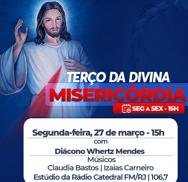 O padre Flavio Vital e o cantor Jorge Mongó vão conduzir hoje o Terço da Misericórdia, às 15h. A Rádio Catedral convida a todos a se unir em oração, rezando o terço, já na preparação para a Semana Santa, que começa neste domingo, com a celebração do Domingo de Ramos. Você também pode participar e…